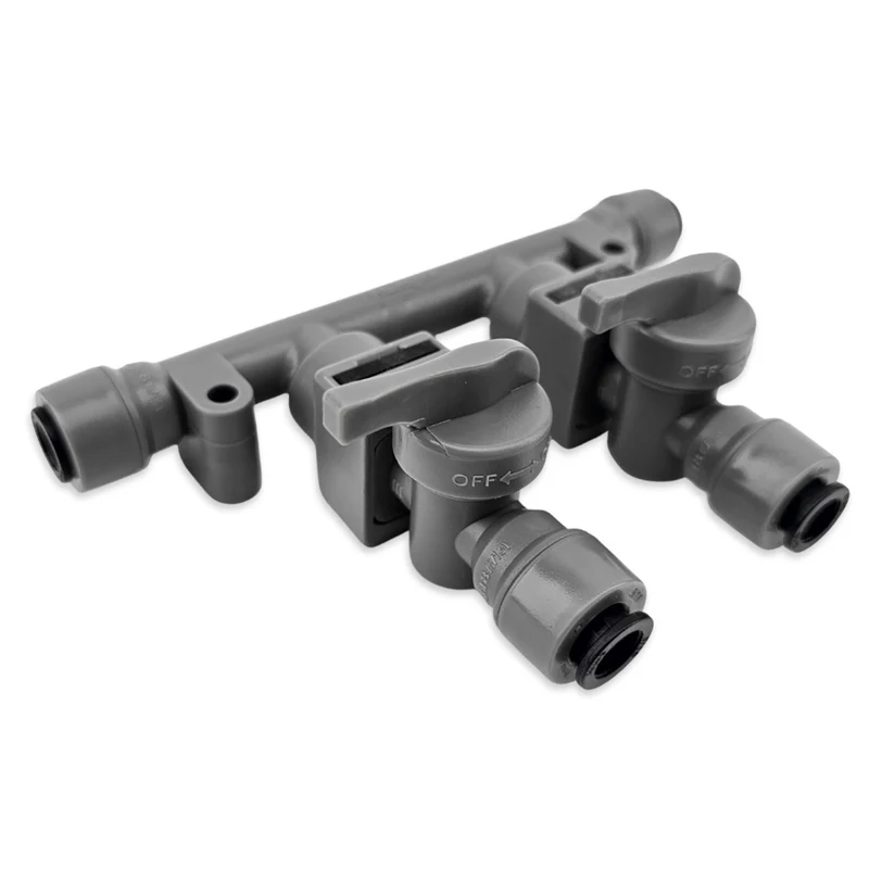 This manifold bracket comes fitted with checkvalves per ball valve outlet. Each check can also be removed if you want gas or water to move freely in both directions.